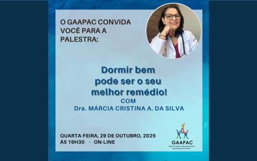 O GAAPAC promove, nesta quarta-feira, dia 12 de novembro, às 19h30, pela plataforma Zoom, mais uma palestra voltada ao bem-estar…